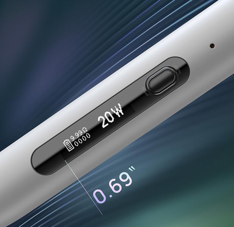 Εξοπλισμένο με οθόνη OLED 0,69 ιντσών που προσφέρει ευκρίνεια στην ισχύ εξόδου σας, στις εισπνοές και στο επίπεδο μπαταρίας.