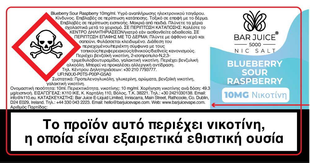 Bar Juice 5000 Blueberry Sour Raspberry 10ml 10mg Nic Salts
