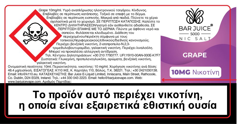 Bar Juice 5000 Grape 10ml 10mg Nic Salts