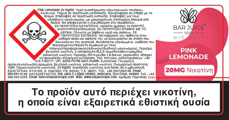Bar Juice 5000 Pink Lemonade 10ml 20mg Nic Salts
