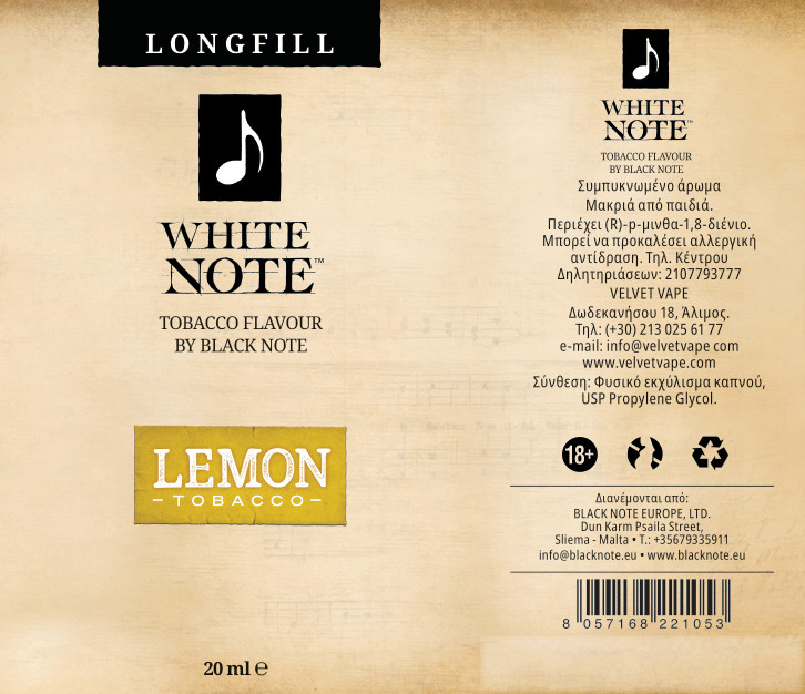 Black Note White Lemon Tobacco 20ml/60ml Flavorshot