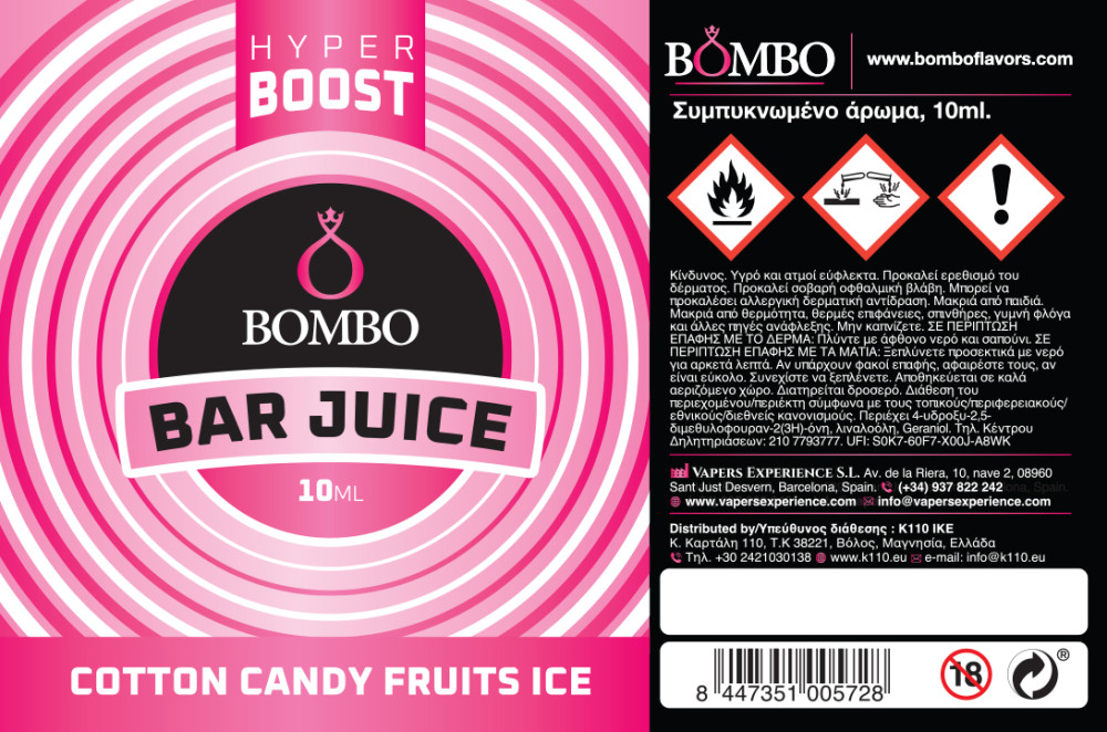 Bombo Bar Juice Hyper Boost Cotton Candy Fruits Ice 10ml/120ml FS
