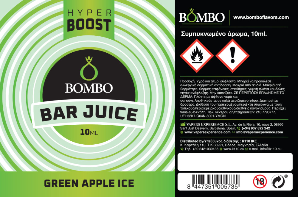 Bombo Bar Juice Hyper Boost Green Apple Ice 10ml/120ml FS