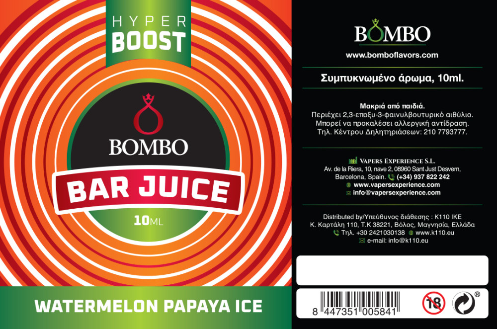 Bombo Bar Juice Hyper Boost Watermelon Papaya Ice 10ml/120ml FS
