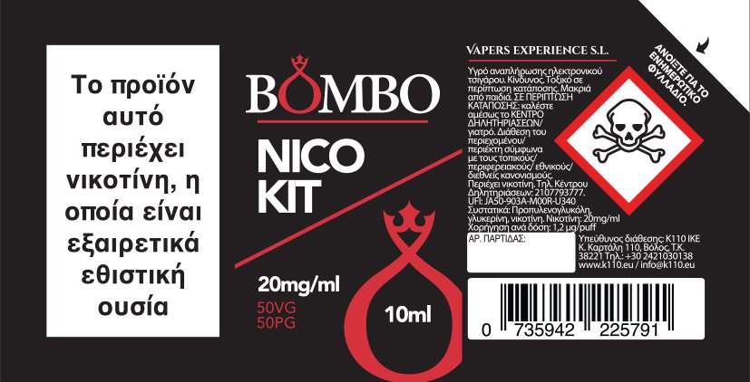Το Nico Kit είναι ένα DIY προϊόν νικοτίνης της Bombo που μπορεί να χρησιμοποιηθεί με μηδενικές βάσεις PG/VG ή σε flavorshots αρώματα διατηρώντας αναλλοίωτα τα αρώματα των υγρών.
