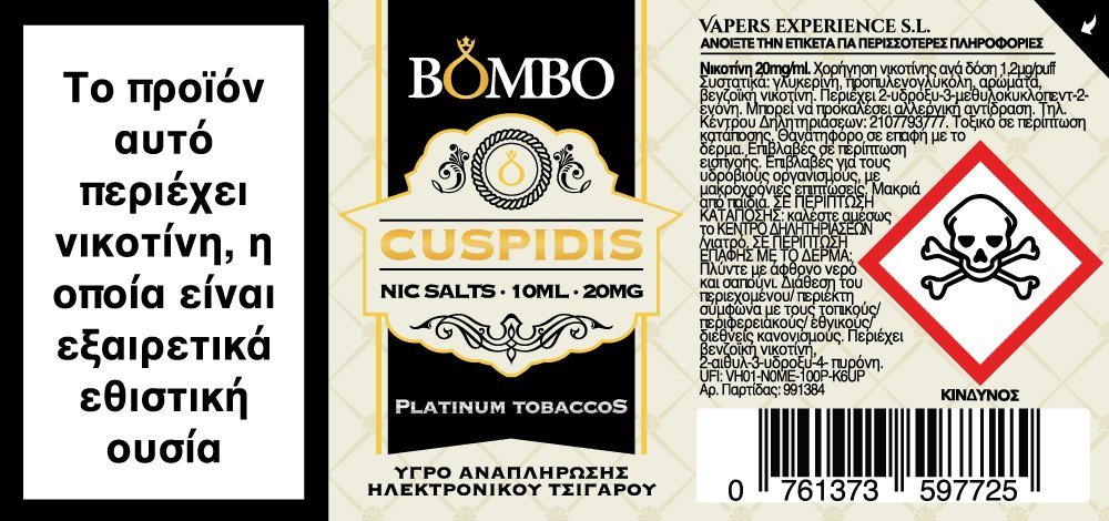 Bombo Platinum Tobaccos Cuspidis 10ml 20mg Nic Salts