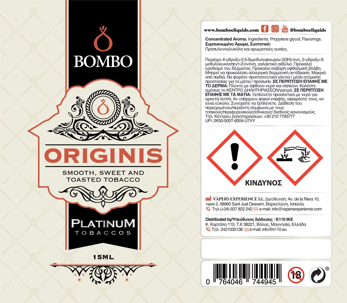 Bombo Platinum Tobaccos Originis 15ml/60ml Flavorshot