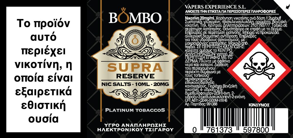 Bombo Platinum Tobaccos Supra Reserve 10ml 20mg Nic Salts