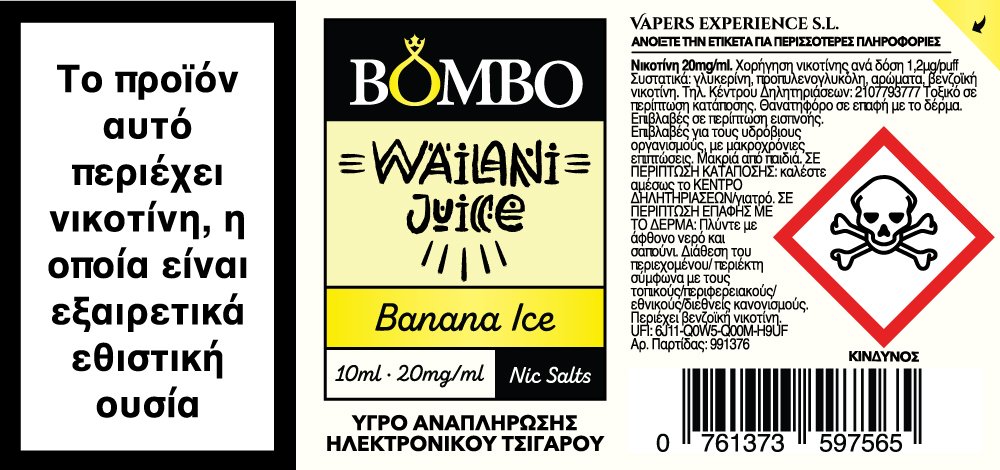 Wailani Juice Banana Ice Nic Salts από την Bombo