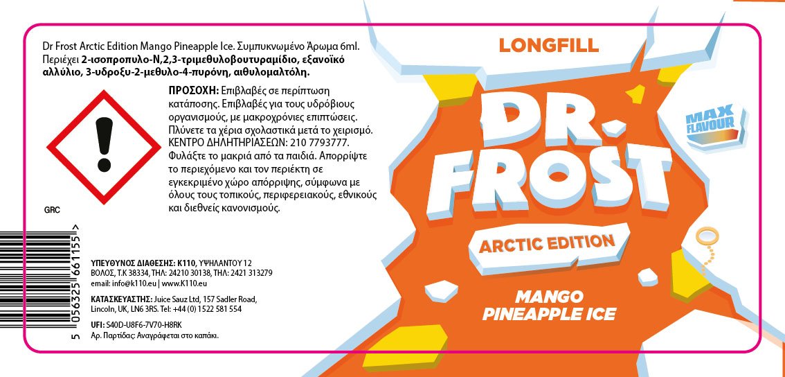Το Mango Pineapple Ice Arctic Edition από την Dr Frost αποτελεί έναν απολαυστικό και δροσερό συνδυασμό από τροπικά μάνγκο και ανανά με μια νότα δροσιάς.