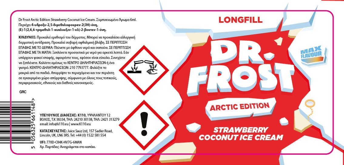 Το Strawberry Coconut Ice Cream Arctic Edition από την Dr Frost είναι μια κρεμώδης σύνθεση από φράουλες, καρύδες και παγωτό με απαλές νότες μενθόλης.