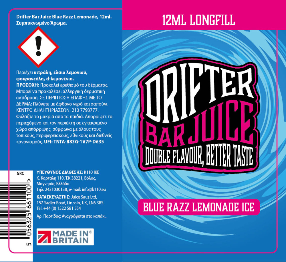 Drifter Bar Juice Blue Razz Lemonade Ice 12ml/60ml Flavorshot