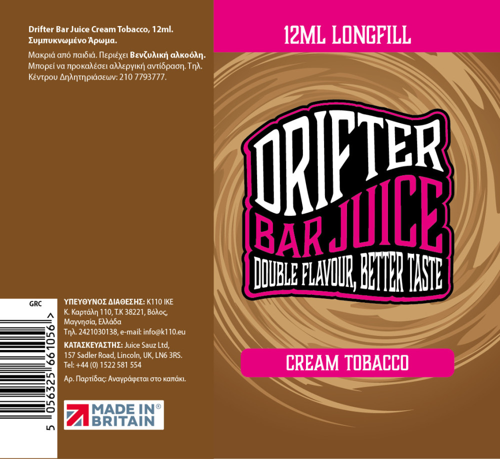 Drifter Bar Juice Cream Tobacco 12ml/60ml Flavorshot