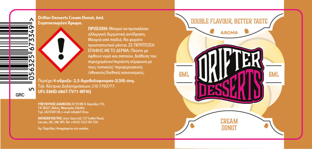 Drifter Bar Juice Desserts Cream Donut 6ml/30ml Flavorshot