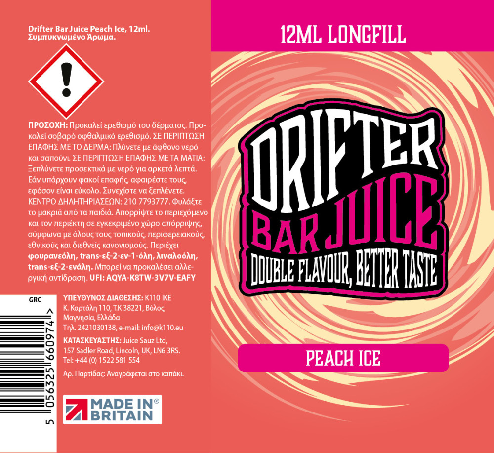 Drifter Bar Juice Peach Ice 12ml/60ml Flavorshot