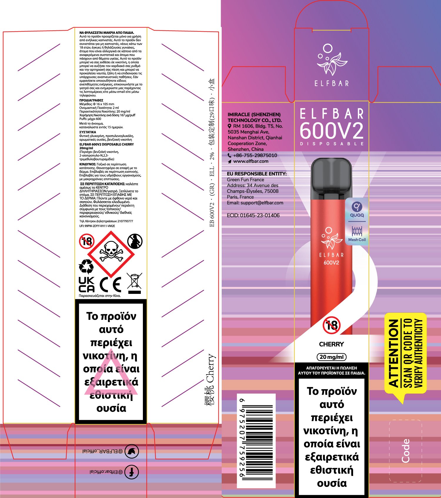 Elf Bar EB 600V2 20mg 2ml Cherry