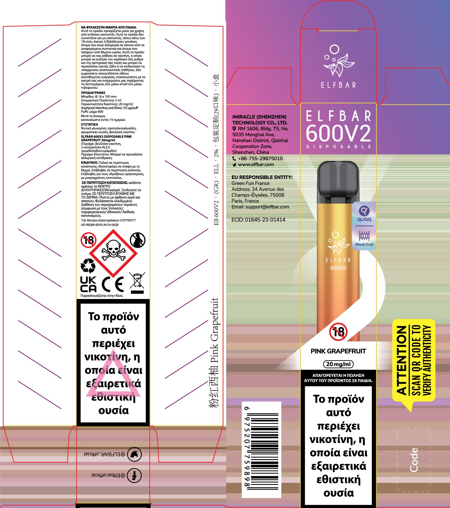 Elf Bar EB 600V2 20mg 2ml Pink Grapefruit