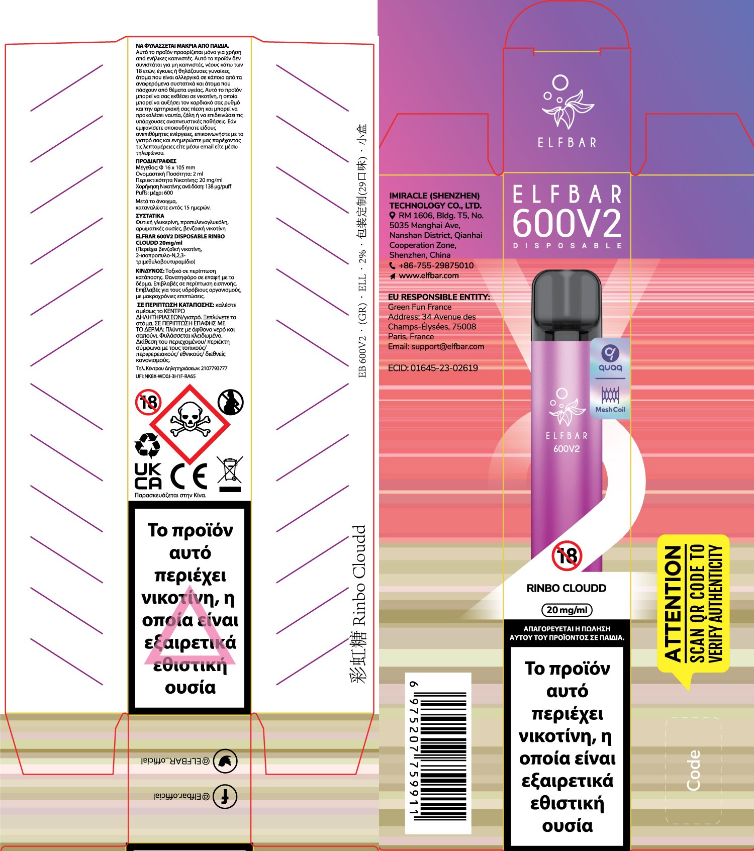 Elf Bar EB 600V2 20mg 2ml Rinbo Cloudd