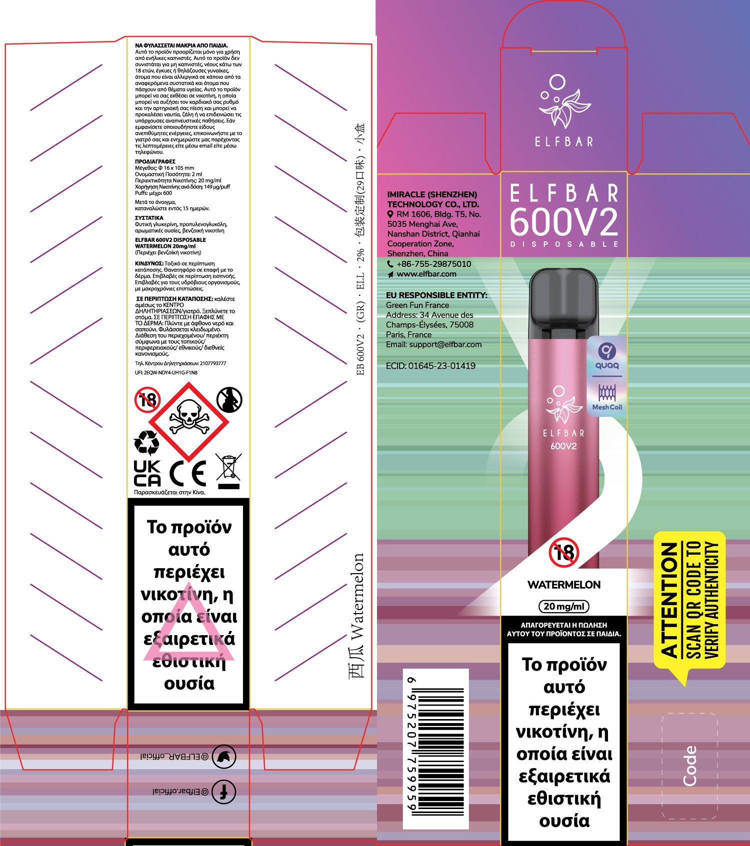 Elf Bar EB 600V2 20mg 2ml Watermelon