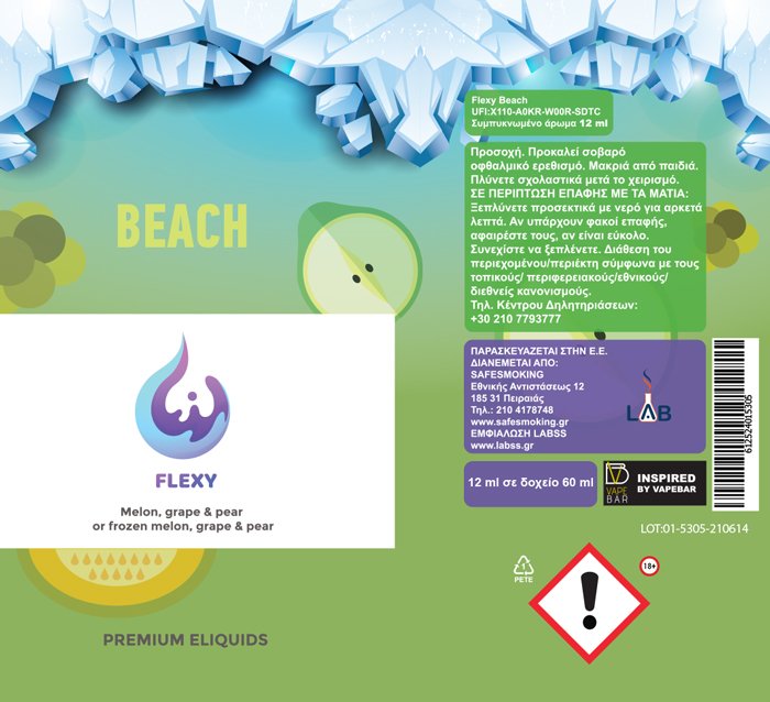 Για να δημιουργήσεις το δικό σου frozen Beach, πρόσθεσε το Flexy ice και πάγωσε το υγρό σου στον επιθυμητό βαθμό ακολουθώντας τον ειδικό δοσομετρητή της συσκευασίας.