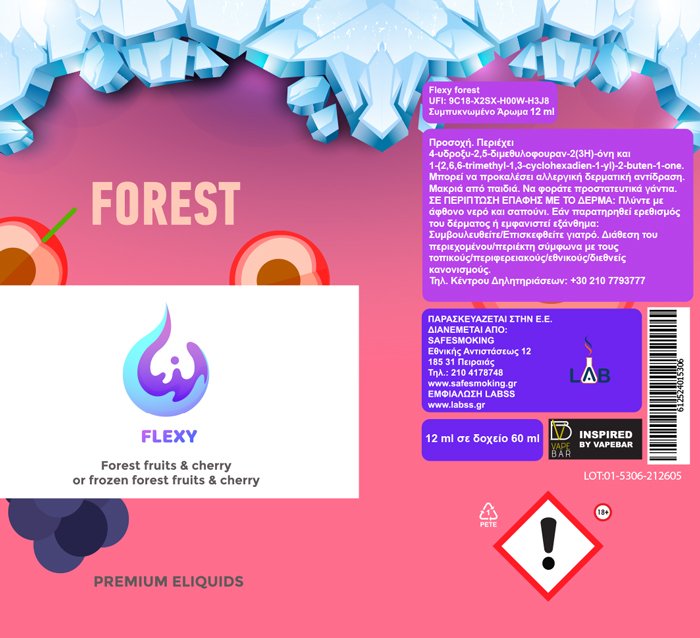 Ένας μοναδικός συνδυασμός από ζουμερά κεράσια και γλυκά κόκκινα φρούτα του δάσους. Για να δημιουργήσεις το δικό σου frozen Forest, πρόσθεσε το Flexy ice και πάγωσε το υγρό σου στον επιθυμητό βαθμό ακολουθώντας τον ειδικό δοσομετρητή της συσκευασίας.