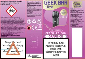 Geek Bar Elite 20mg 2ml Prefilled Δεξαμενή 1τεμ Grape Ice