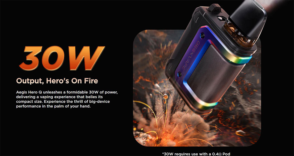 Το Aegis Hero Q απελευθερώνει μια τρομερή ισχύ 30 W, παρέχοντας μια εμπειρία ατμίσματος που διαψεύδει το μικρό του μέγεθος.