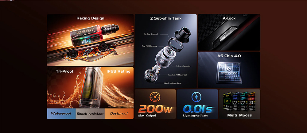 Το Geekvape Aegis Legend 5 Kit 200W είναι το απόλυτο vape mod ισχύς, ανθεκτικότητα και έλεγχος — όλα σε μία στιβαρή συσκευή. Τροφοδοτείται από δύο εξωτερικές μπαταρίες 18650 (δεν περιλαμβάνονται) και τροφοδοτείται από το αστραπιαίο chipset AS 4.0, το Legend 5 προσφέρει έως και 200W μέγιστης ισχύος με άμεση ταχύτητα πυροδότησης 0,01s. Σχεδιασμένο με γνώμονα τις πραγματικές προκλήσεις, η βαθμολογία IP68 προσφέρει ασυναγώνιστη αντοχή σε κραδασμούς, στεγανοποίηση και προστασία από τη σκόνη — ιδανικό για απαιτητικά περιβάλλοντα όπως εργοτάξια, μονοπάτια πεζοπορίας ή ενεργά ταξίδια. Το μεταλλικό πλαίσιο με χάραξη λέιζερ και η ανάγλυφη λαβή προσφέρουν μια ασφαλή και κομψή αίσθηση, ενώ η αναβαθμισμένη δυναμική οθόνη 1,08″ με προσαρμόσιμες λωρίδες φωτισμού βελτιώνει τη χρηστικότητα σε όλες τις συνθήκες φωτισμού. Εξοπλισμένο με τη δεξαμενή Z Sub-Ohm Tank 2021 και συμβατό με τις αντιστάσεις mesh της σειράς Z, αυτό το κιτ έχει σχεδιαστεί για άτμισμα DTL, πλούσια γεύση και πυκνό ατμό. Με τις λειτουργίες Smart, Power, Boost, Eco, TC και Memory, το Legend 5 σας δίνει την ελευθερία να προσαρμόζετε κάθε εισπνοή — είτε χρειάζεστε μεγάλη διάρκεια μπαταρίας είτε έντονη απόδοση.