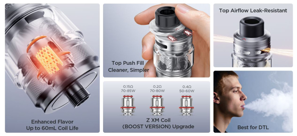 Ο GeekVape Z Sub-Ohm Tank 5 είναι ένα αξιόπιστο sub-ohm tank για DTL άτμισμα, με έμφαση στην πλούσια γεύση και την έντονη παραγωγή ατμού. Διαθέτει χωρητικότητα 5,5 ml, top-fill σύστημα για εύκολο γέμισμα και top airflow που μειώνει τις διαρροές. Συμβατός με αντιστάσεις GeekVape Z Series, προσφέρει σταθερή απόδοση και αντοχή στην καθημερινή χρήση.