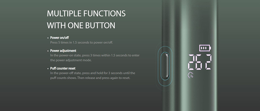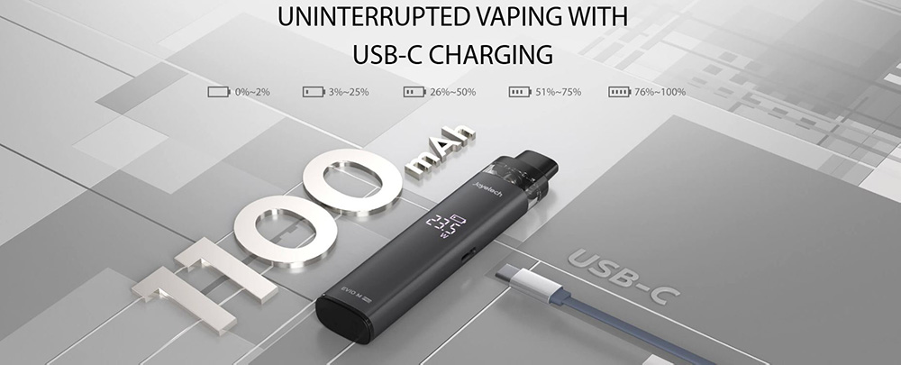 Το EVIO M Pro διαθέτει ένθετη οθόνη για εύκολη πρόσβαση σε διαφορετικά δεδομένα της συσκευής. Με μέγιστη ισχύ εξόδου 30 W. Επιπλέον, υποστηρίζει την προσαρμογή των επιπέδων ισχύος από τον χρήστη ώστε να ταιριάζει καλύτερα στις μεμονωμένες προτιμήσεις ατμίσματος. Η ακριβής ρύθμιση της ροής αέρα επιτυγχάνεται με μια απλή εναλλαγής της ρύθμισης. Επιπλέον, η μπαταρία 1100mAh του EVIO M Pro εξασφαλίζει λιγότερη διάρκεια χρήσης.