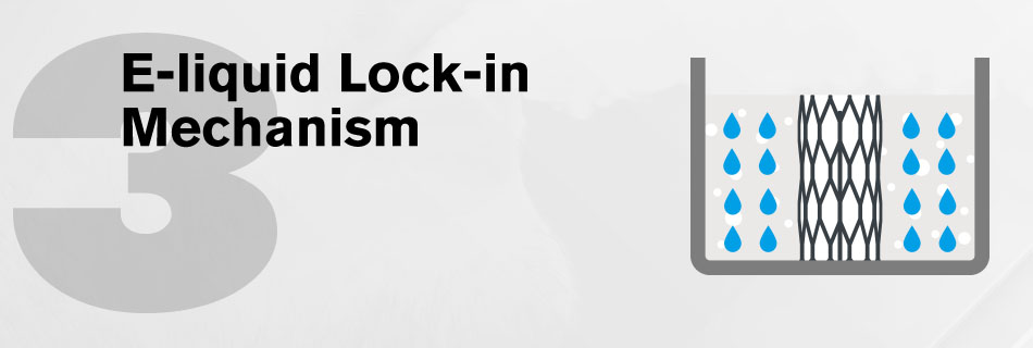 Ανεξάρτητα από το γεγονός εάν ατμίζεται με ελαφριά κλίση ή τοποθετείτε το mod εντελώς ξαπλωμένο στο τραπέζι όταν δεν χρησιμοποιείται, το μεγάλο βαμβάκι στο εσωτερικό του αποθηκεύει πάντα αρκετό υγρό, διασφαλίζοντας ότι δεν θα χτυπήσει στεγνά όποτε ατμίσετε.