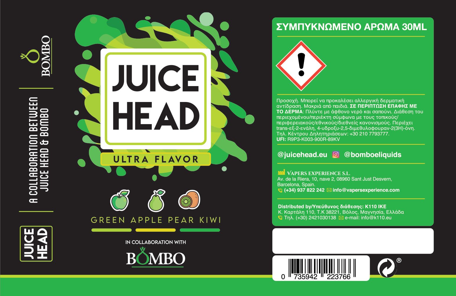 Η Juice Head είναι ένα παγκοσμίως αναγνωρισμένο brand, γνωστό για το διασκεδαστικό και τολμηρό branding, την κορυφαία ποιότητα και τις αξεπέραστες γεύσεις της. Σε συνεργασία με τη Bombo δημιούργησε μια μοναδική σειρά γεύσεων από τροπικά φρούτα.