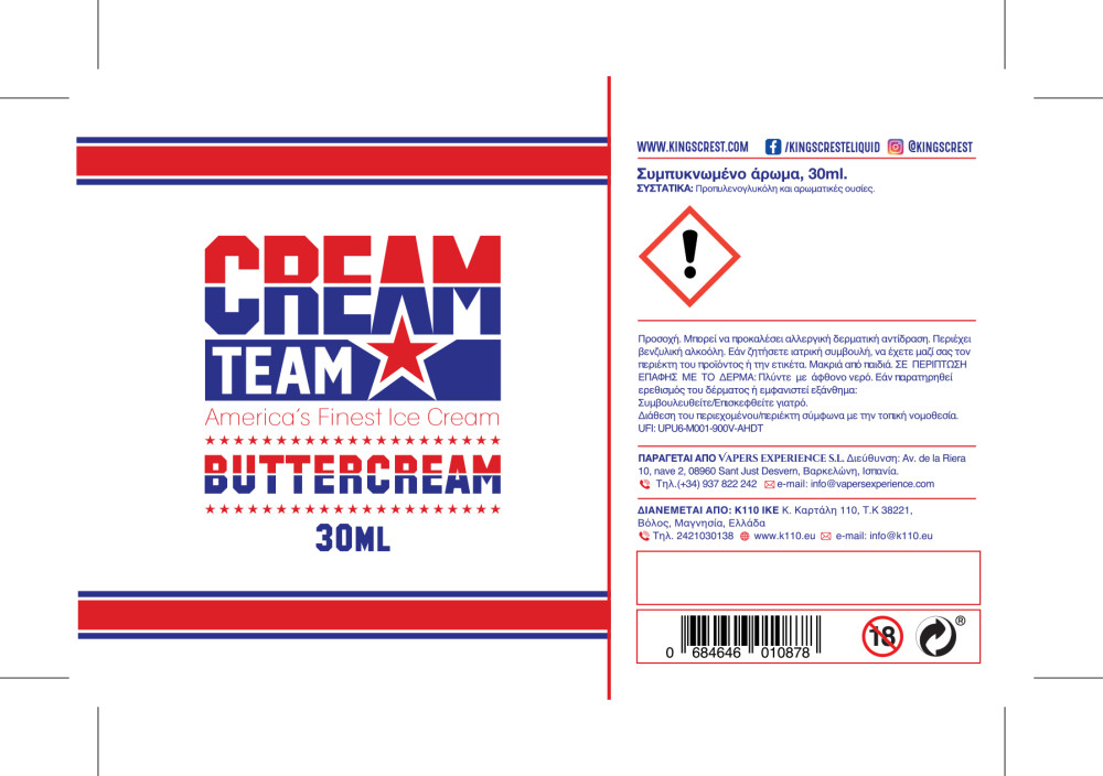 Kings Crest Cream team Buttercream 30ml/120ml Flavorshot