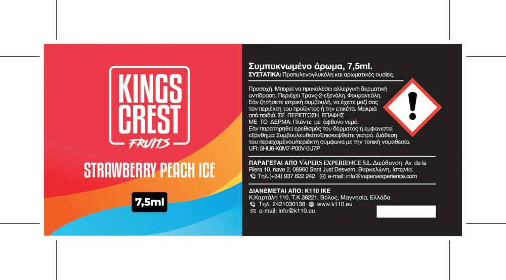 Kings Crest Fruits Ice Strawberry Peach7.5ml/30ml Flavorshot