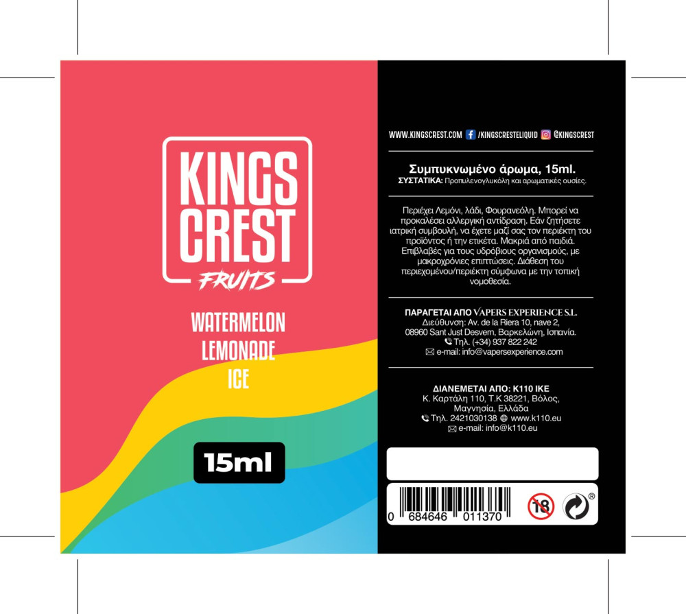 Kings Crest Fruits Ice Watermelon Lemonade 15ml/60ml Flavorshot