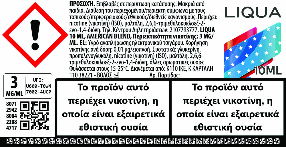 Liqua American Blend 3mg 10ml Υγρό Αναπλήρωσης