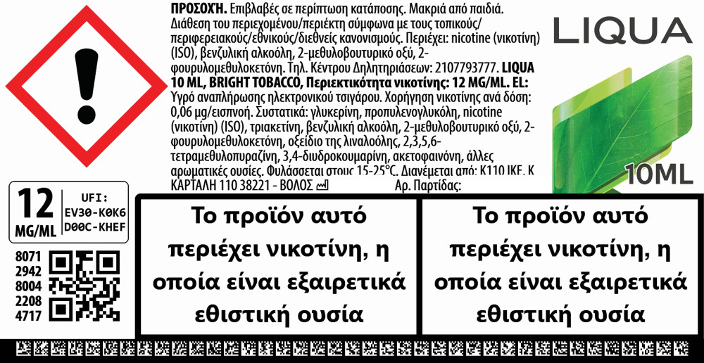 Liqua Bright Tobacco 12mg 10ml Υγρό Αναπλήρωσης