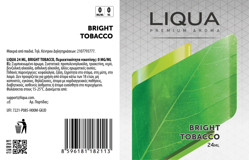 Η Liqua δημιούργησε για τους γνήσιους λάτρεις του καπνού Virginia, το Bright Flavorshot. Ένα πιστό σε γεύση υγρό αναπλήρωσης του γνωστού καπνού με ξυλώδη μπαχαρικά.