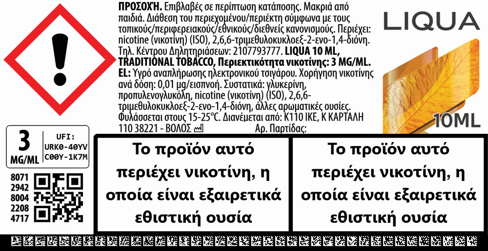 Liqua Traditional Tobacco 3mg 10ml Υγρό Αναπλήρωσης