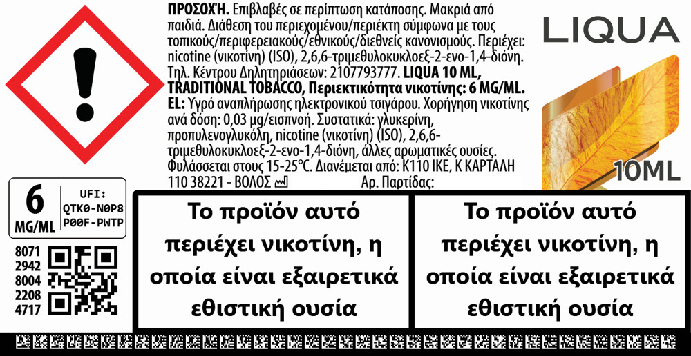 Liqua Traditional Tobacco 6mg 10ml Υγρό Αναπλήρωσης