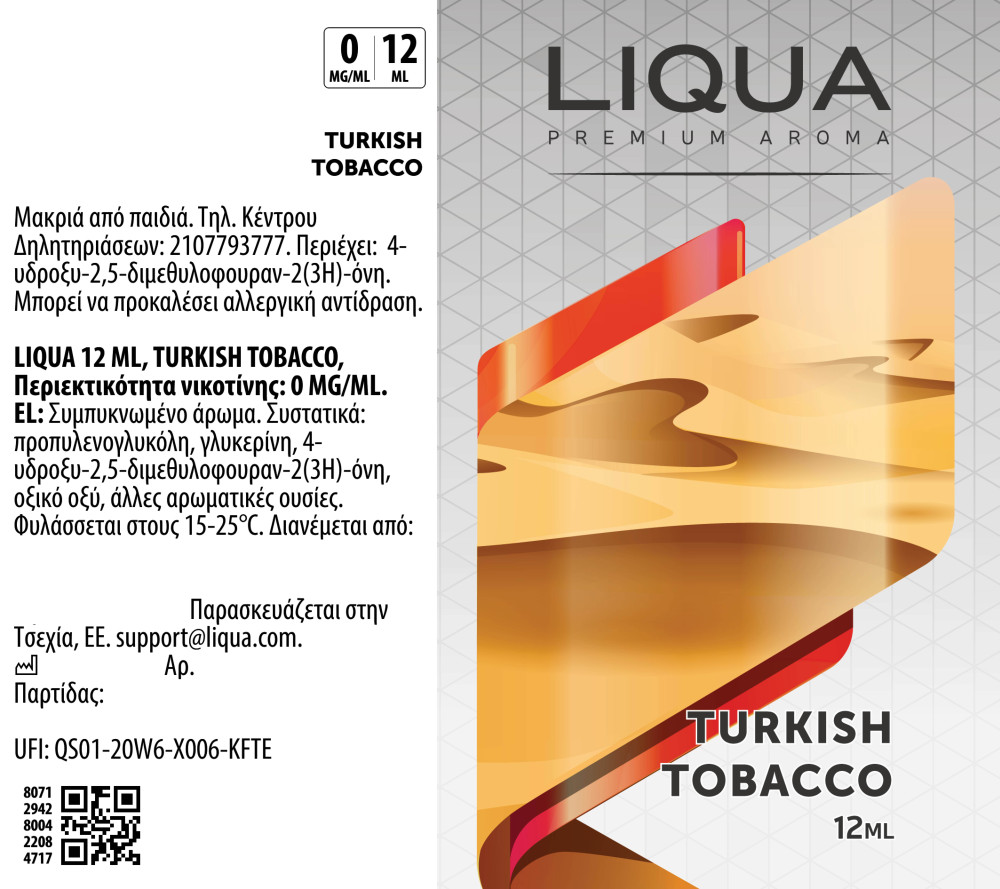 To Flavorshot Liqua Turkish Tobacco είναι ένα δυναμικό καπνικό flavorshot για τους λάτρεις των γνήσιων καπνικών αρωμάτων. Πρόκειται για ένα Ανατολίτικο άρωμα, που στην εισπνοή σας δίνει μία πικάντικη γεύση του καπνού ενώ στην εκπνοή ξετυλίγεται ένα ζεστό, γλυκό τελείωμα μελιού που θα σας εντυπωσιάσει.