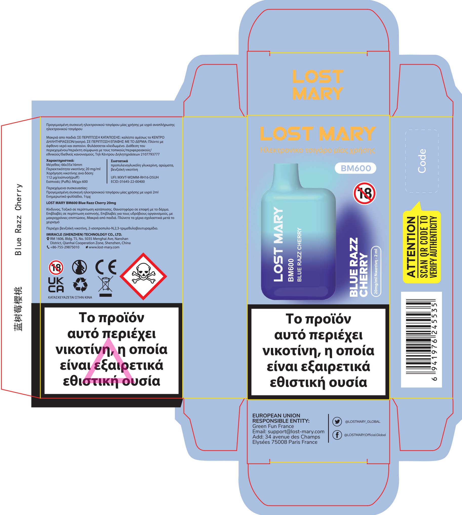 Lost Mary BM600 20mg 2ml Blue Razz Cherry|