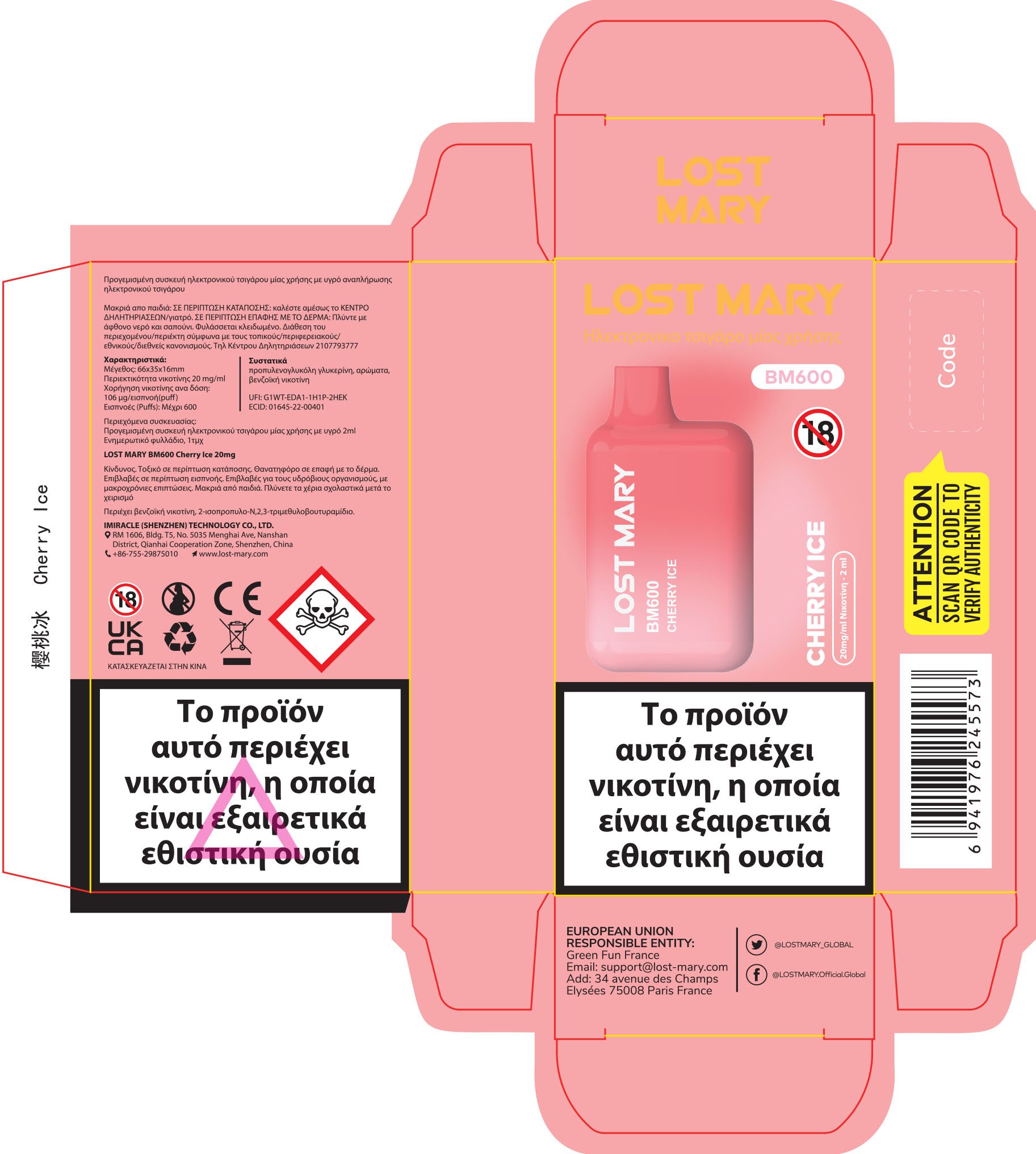Lost Mary BM600 20mg 2ml Cherry Ice GR