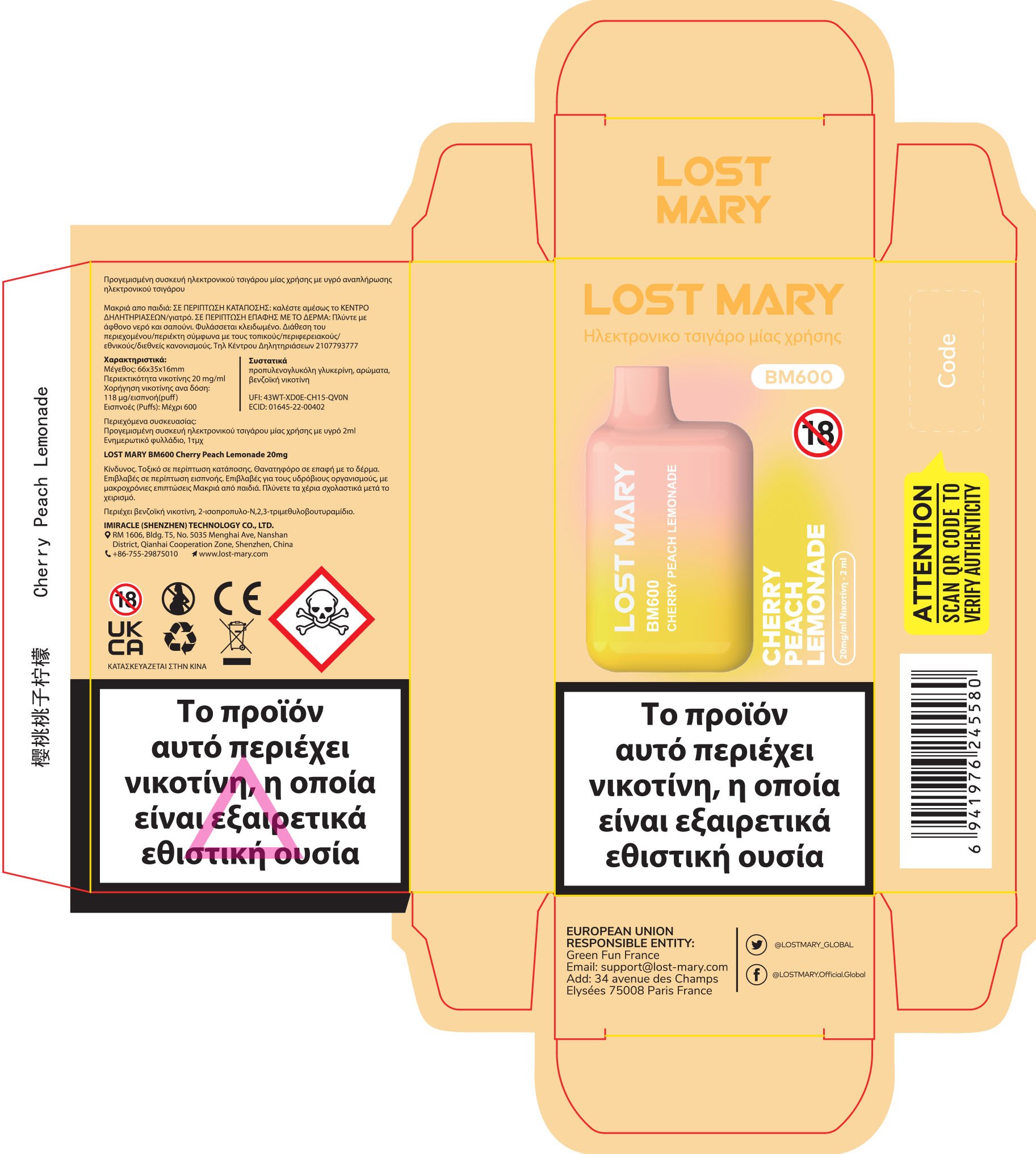 Lost Mary BM600 20mg 2ml Cherry Peach Lemonade |