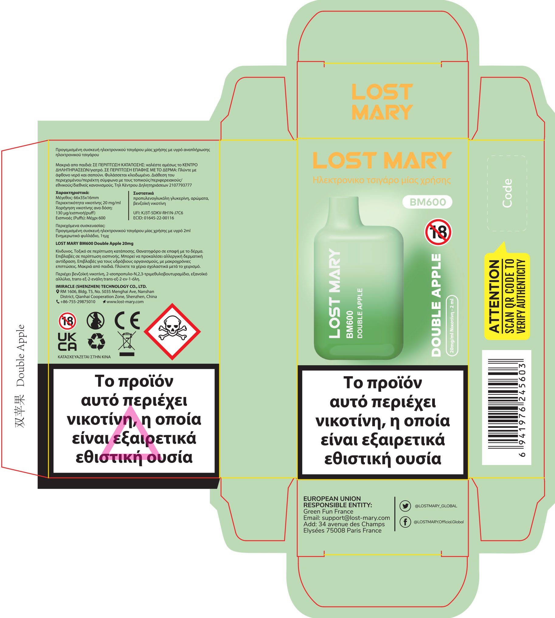 Double Apple: Ένα είδος μήλου δεν ήταν αρκετό για την Lost Mary και το ΒΜ600. Σε αυτό το Double Apple έχουν συνδυάσει γλυκά και ζουμερά κόκκινα μήλα με πράσινα μήλα για να δημιουργήσουν ένα λαχταριστό αποτέλεσμα.