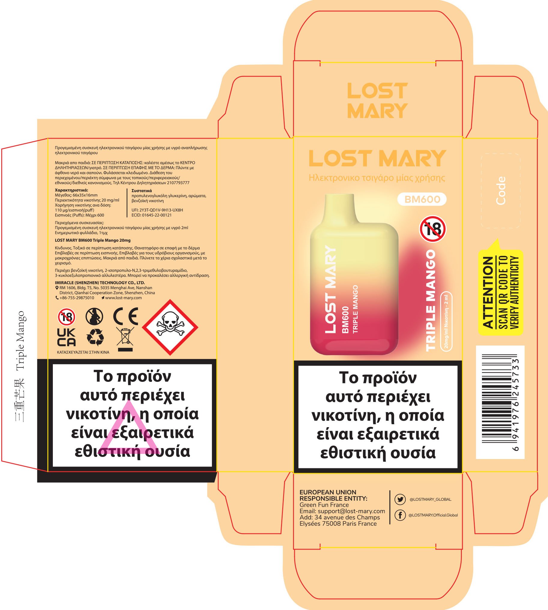 Lost Mary BM600 20mg 2ml Triple Mango GR