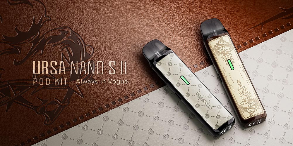Ζήστε την απόλυτη κομψότητα με το URSA NANO S II, με λεπτή υφή δέρματος και εξαιρετικά μοτίβα. Απολαύστε ισχυρό άτμισμα με ισχύ έως και 30 W και συμβατότητα με το URSA Cartridge V2. Επωφεληθείτε από μια ενσωματωμένη μπαταρία 1000 mAh με ένδειξη LED και ρυθμιζόμενο έλεγχο ροής αέρα για μια πλήρως εξατομικευμένη εμπειρία.