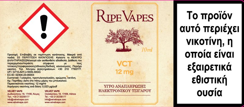 Ripe Vapes VCT 12mg 10ml Υγρό Αναπλήρωσης