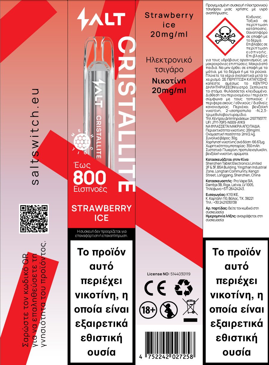 Salt Cristallite 20mg 2ml Strawberry Ice
