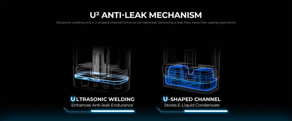 Η συγκόλληση με υπερήχους και το δοχείο σε σχήμα U ενισχύουν την αεροστεγανότητα της δεξαμενής, παρέχοντας μια εμπειρία ατμίσματος χωρίς διαρροές και χωρίς προβλήματα